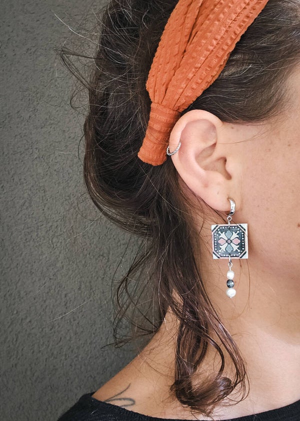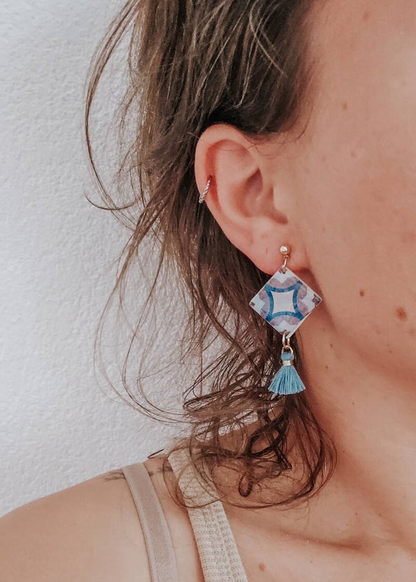 Een kleine collectie handgemaakte tegeltjes. Met kwastjes, steentjes of pareltjes.